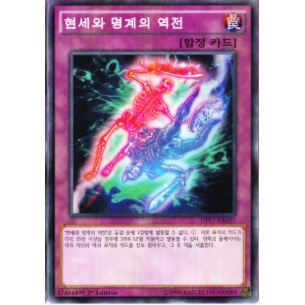 자신의 묘지에 카드가 15장 이상이 있을 때, 1000 라이프 포인트를 지불하고 발동. 양쪽 플레이어는 서로 자신 묘지와 자신 덱의 카드를 전부 바꾼다. 그 때, 묘지의 카드는 셔플하여 덱 존에 세트한다.