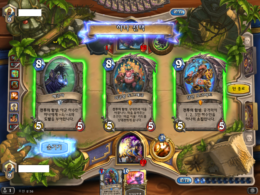 사제 카드 중 8코 넘는 하수인이 없다. 결국 공용 중 하나 찾으라는 건데 운빨로 필요한 8, 9, 10코 공용카드 찾을바엔 덱에 넣는다 그냥. 전함도 안먹음 ㅋㅋㅋㅋ