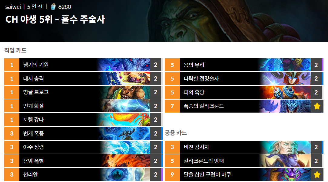 신병 2마리 나오는 홀수기사나 1코로 토템박는 짝수술사를 놔두고 이딴 똥덱을 하는 사람은 천토뽑고 즐겜하는 20급 혹은 5급충 외에는 볼일이 없다.