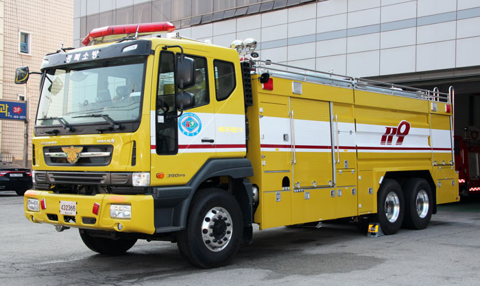 유류,전기,금속 화재 같은 특수 화재를 진화하기 위해 만들어진 소방차다.
