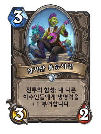 코볼트 공용 일반카드 3코 3/2 전투의 함성: 아군 하수인들에게 생명력을 +1 부여합니다.