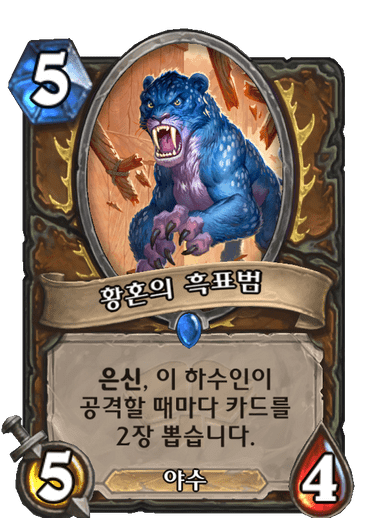 5코 5/4 야수, 은신, 이 하수인이 공격할 때마다 카드를 2장 뽑습니다.