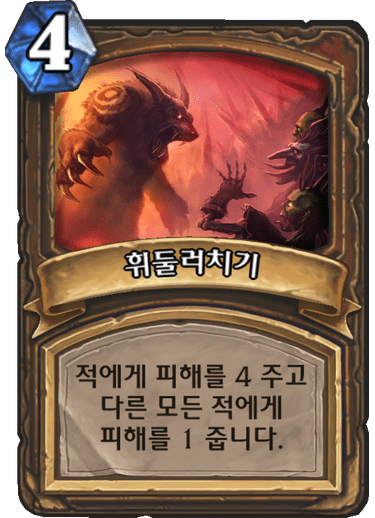 하스스톤 드루이드의 직업카드로 4코에 적에게 피해를 4 주고 다른 모든 적에게 피해를 1 준다.