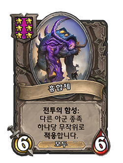 2성 존엄이었다가 미국가버린 악몽의 융합체가 6성판으로 돌아왔다. 저 전투의 함성은 자기 자신 1+ 전장에 배치된 하수인의 종족 수만큼 적응한다. 내필드에 용야멀이 있다면 4번 적응하고 용족만 있다면 2번 적응한다.