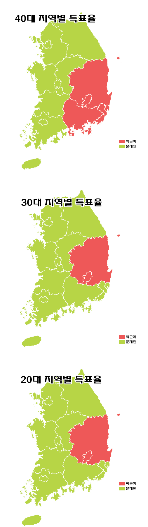20~40대 득표율에서 전부 졌는데 진 쪽이 이긴 신기한 상황이다. 그 와중에 TK는 일편단심 박근혜다. 가장 박근혜를 많이 뽑은 세대는 50대인데 깨시민들은 이를 두고 노인네 뒈지라면서 국개론을 빨고 있다. 근데 이 50대는 10년 전에 노무현 뽑던 세대다. 다시 말해, 10년 전에 노무현 지지하던 사람들이 이때는 박근혜를 지지했다는 것이다. 근데 둘 다 탄핵 심판이라니, 이런 기가 막히는 우연이 있나.
