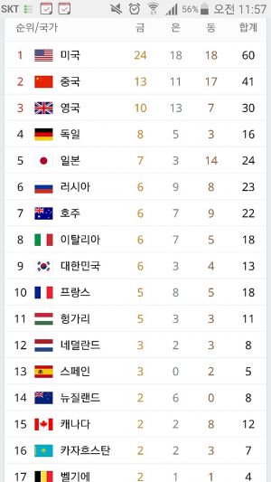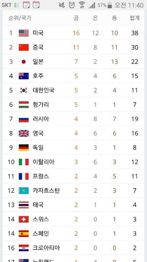 - 태권도에서는 역으로 서건창께 이겼다. 덕분에 국뽕들 어리둥절하면서 어느 장단에 맞출지 간을 보기도. 신기하게 금메달 확정 직후에는 뉴스 여론에 대부분이 좆도 재미없는거, 금메달따도 찝찝하다 이런 댓글밖에 없던게 어느순간 여론공작인지 욕하면국까, 선수들 노력에 응원은 못할말정 욕하지마라(물론 다른나라선수면 욕한다.) 이딴식으로 태세전환 ㄷㄷ