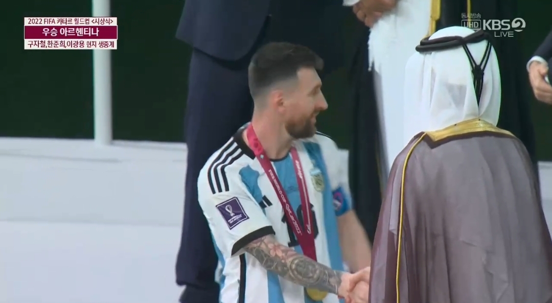 카타르 국왕이 직접 곤룡포 입혀주고 트로피를 들어올리면서 대관식이자 월드컵 은퇴식을 완료하게 된 축구의 신.