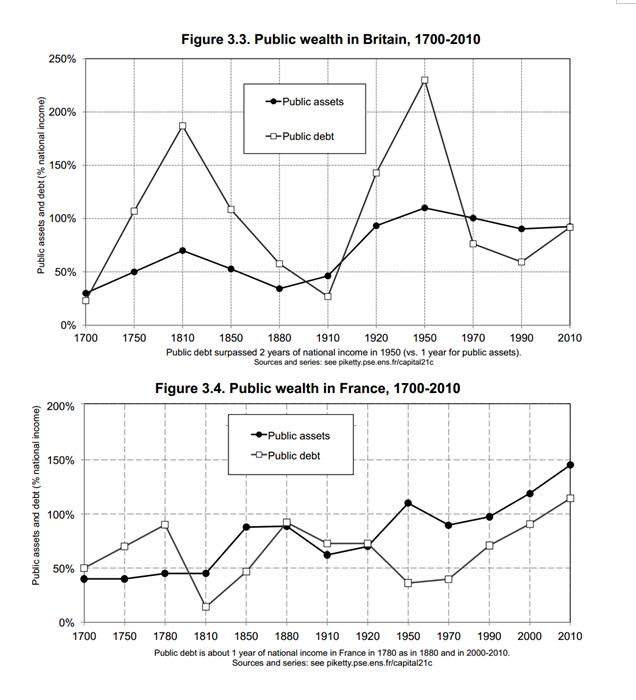두 차례의 세계대전을 치루고 난 후, 해외자본 상실[16], 낮은 저축률, 물리적 파괴, 소유권 변화, 새로운 정치적 상황으로 인한 자본규제에 따른 낮은 자산 가격[17] 등에 의해 자본/소득 비율은 급락했다.