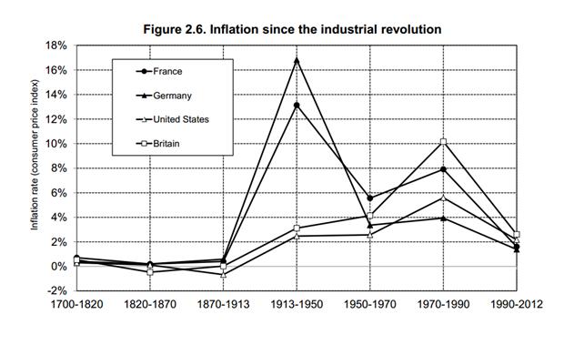 프랑스의 악성 디플레이션은 35년까지 계속되었다. 심각한 디플레이션이 화폐의 구매력을 높였고 따라서 화폐표시 자산저축이 많은 상위 10%의 몫이 증가했다. 36년 마티뇽 협정 임금인상과 프랑화의 평가절하로 인한 인플레이션으로 소득 불평등은 크게 감소했다. 미국에서는 세계대전으로 인한 물리적 파괴는 없었으나, 대공황 때의 자본위축과 1940년 연방정부의 대폭적인 세율 인상이 소득불평등의 축소를 가져왔다. 그러나 1980년 이후 상황은 반전되어, 소득불평등이 대폭 심화되었다.