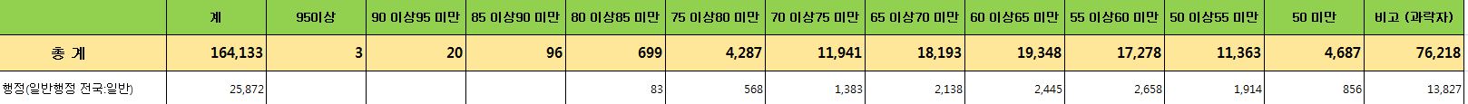 약 16만명 중에서 약 7만명이 넘는 수가 과락으로 떨어진다.