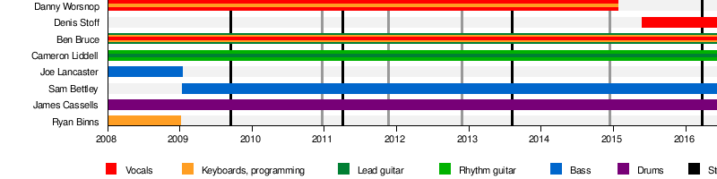 • Cameron Liddell[2] – 리듬 및 리드기타