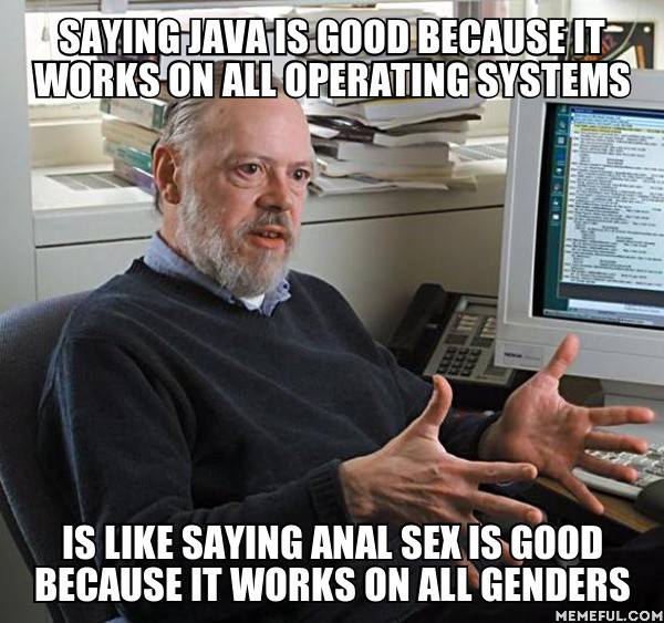 뭔 소리냐고? PC 4대 문제아로 꼽히는게 플래시 플레이어, 실버라이트, PDF, 자바다. 자바가 겉으로 보면 메모리 공격에 취약한 C언어보다 보안성이 강력해 보이지만 실제로는 가상머신이 매우 취약해서 패치 방법만 알면 C언어가 이긴다. 좆나 오래된 C언어를 아직도 보안으로 지는 자바에게 조의를 표하자.