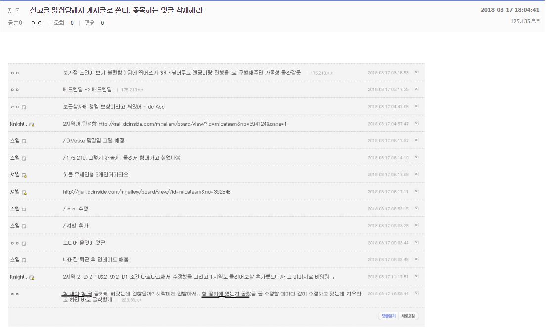 2018년 8월 16일 오후 8시경에 올라온 글이다.