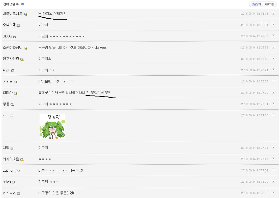 2018년 8월 15일 오후 9시경 개념글에 닉언하는 꼬라지를 보고 글을 쌌으나 신고글은 삭제되었다.
