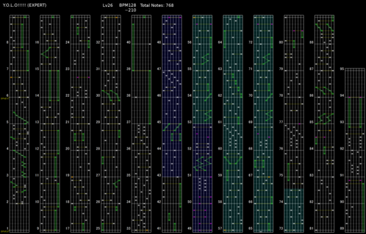 그냥 26치고 존나어렵다. 이 곡은 폭타, 일명 트릴이라는 구간이 존재한다. 근데 이 트릴이라는 구간이 곳곳에 있는데, 트릴에 익숙해져있는 유저라고 해도, 이 욜로의 트릴구간은 쳐내기가 존나 빡세다.